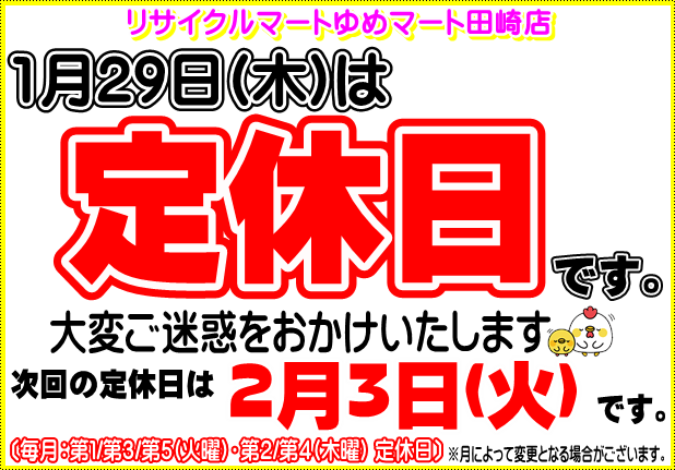 【1月】定休日のご案内