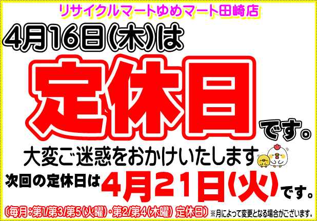 【4月】定休日のご案内