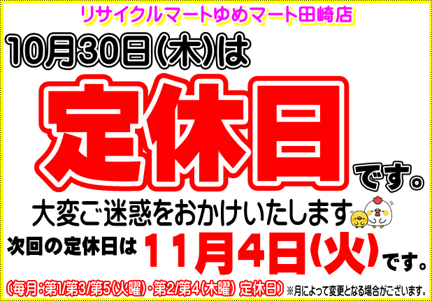 【10月】定休日のご案内