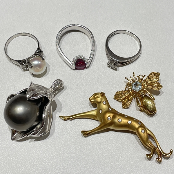 プラチナリング・K18 蜂・豹ブローチ・K18WGパールトップ 静岡市 貴金属買取