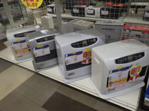 リサイクルマート富合店の店頭に石油ファンヒーターが並び始めました