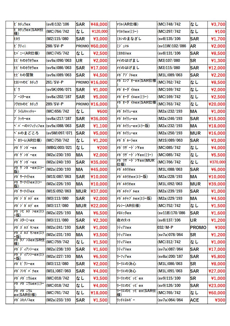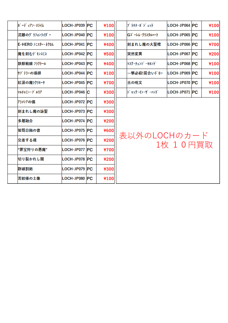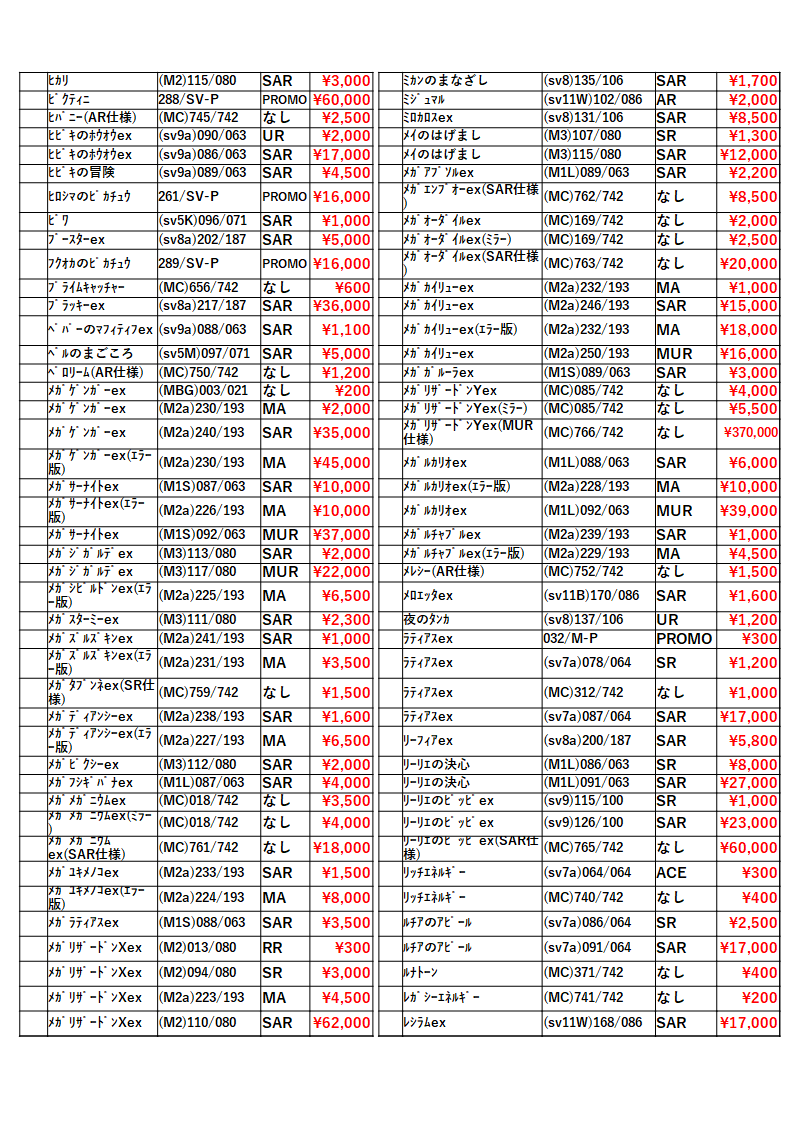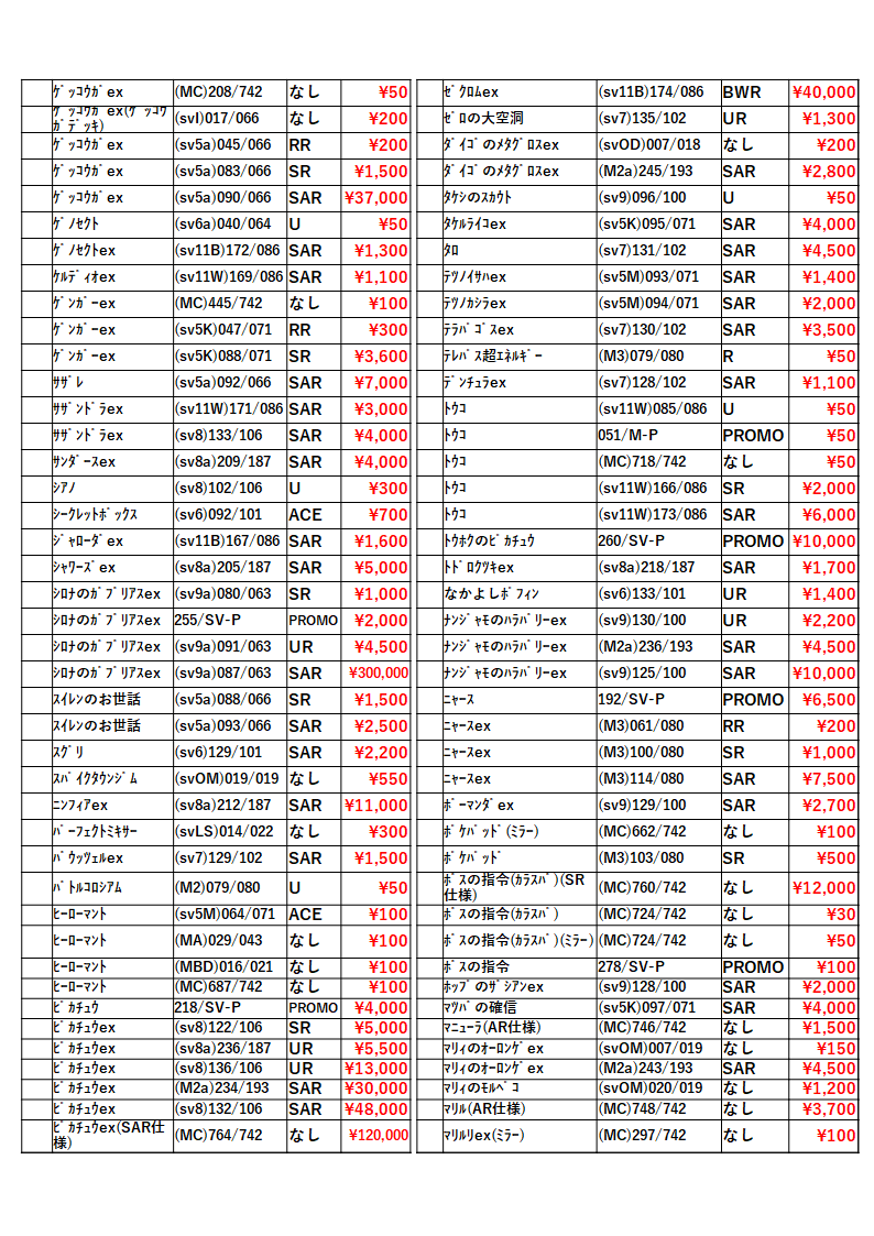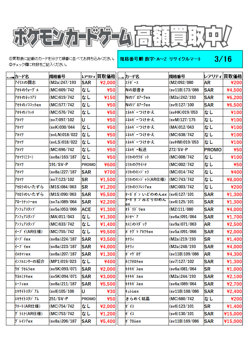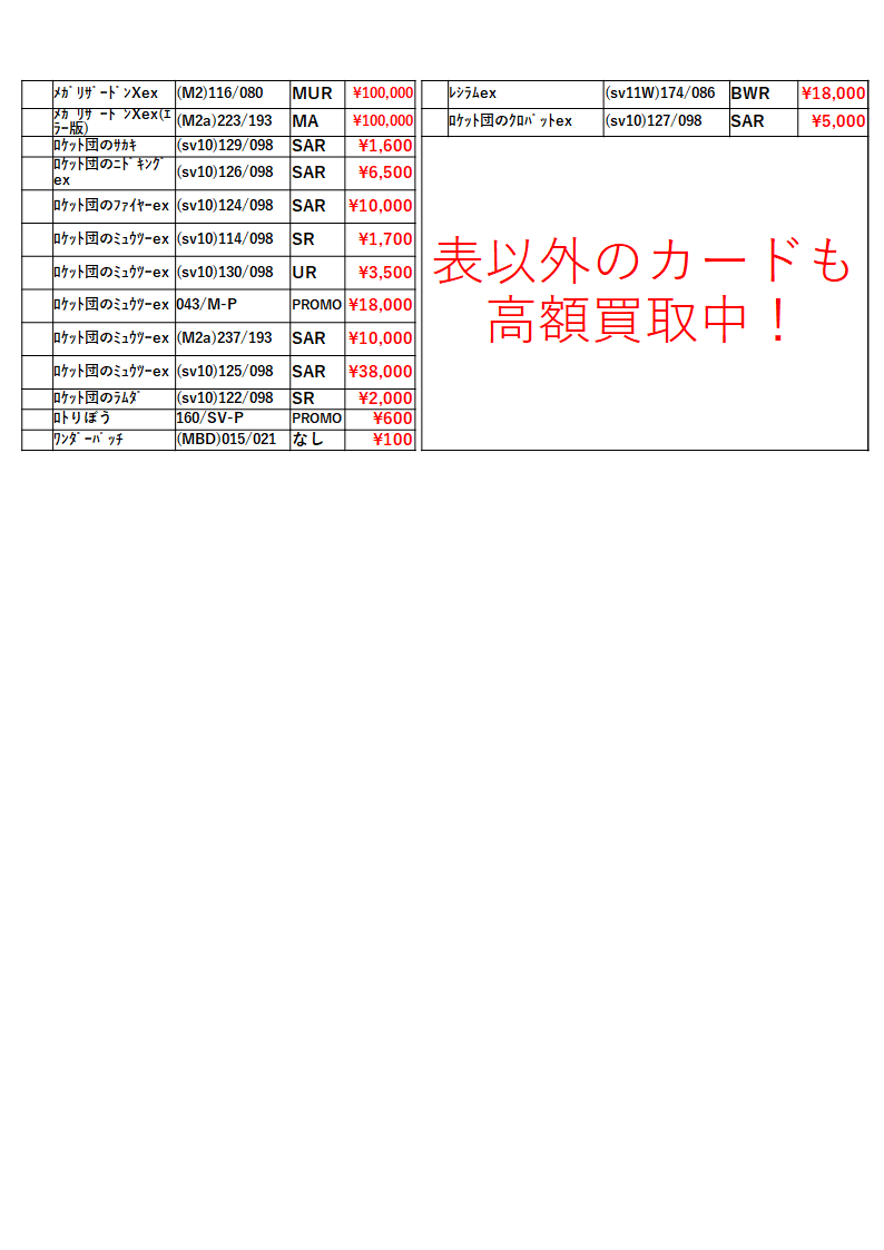 トレカ!買取一覧表! ご案内!