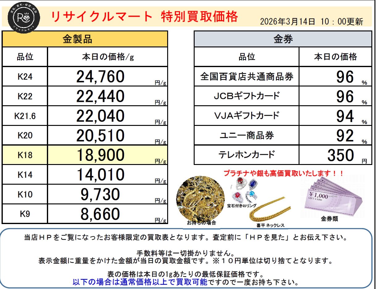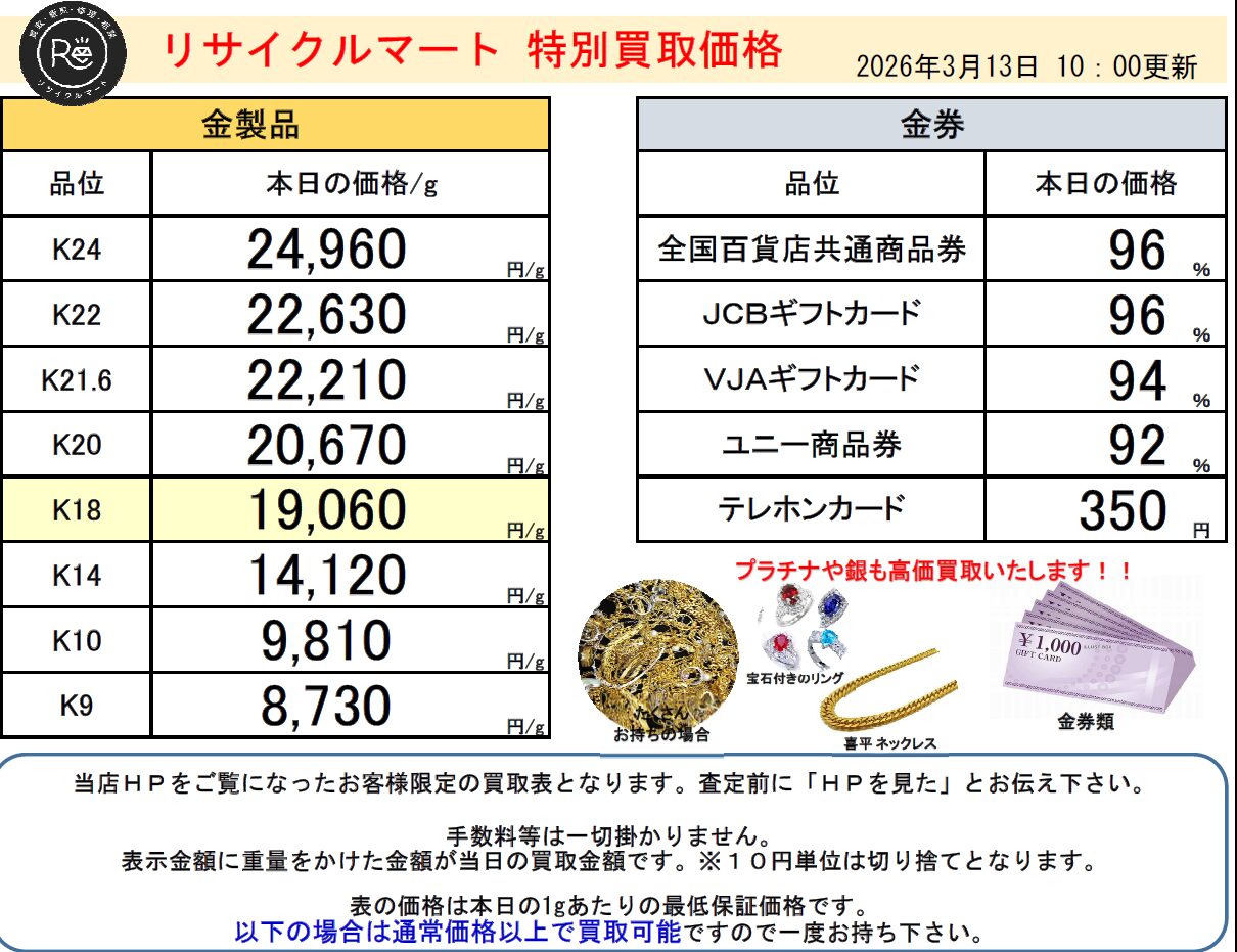 スタッフブログ・・・・3月13日K18買取価格