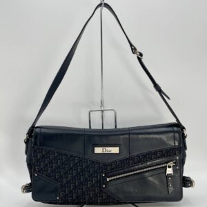 Christian Dior(クリスチャン・ディオール) ストリートシック ワンショルダー トロッター柄 レザー×キャンバス ハンドバッグ(ブラック)