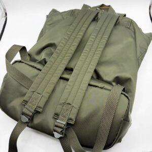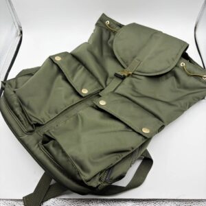 両ブランドの魅力が融合した人気モデルで、上質な素材とシンプルで洗練されたデザインが特徴のリュックです。落ち着いたブラックオリーブカラーにゴールド金具がアクセントとなり、カジュアルからビジネスまで幅広く活躍するアイテムです。