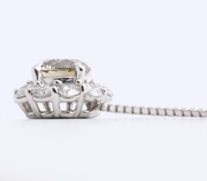 メインダイヤと脇石ダイヤを合わせると約2ct以上となり、しっかりとしたボリュームのあるネックレスでした。