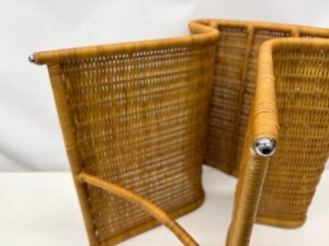 ササクレや折れ: 経年による乾燥や衝撃で、ラタンの編み込み部分に「折れ」や「飛び出し」がないか確認します。特に座面や底に近い部分は傷みやすいため、状態が良いほど高評価となります。