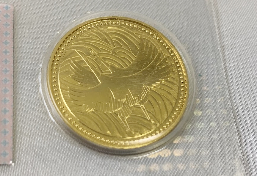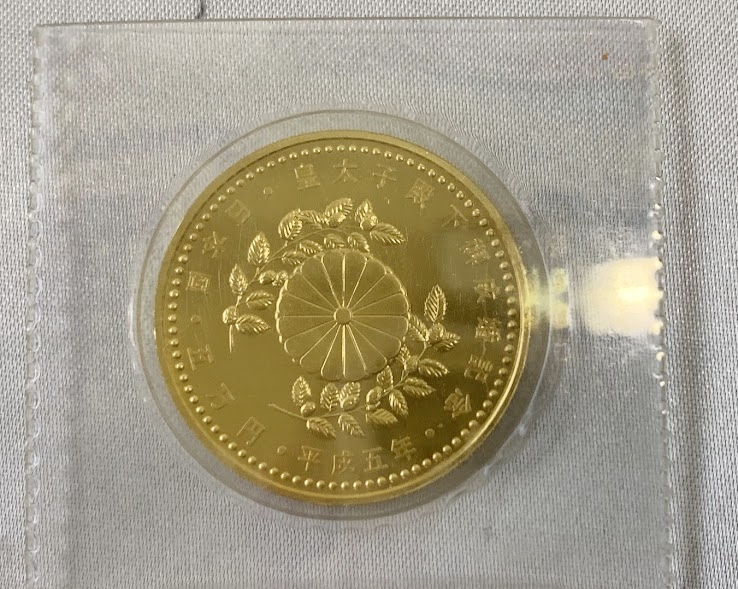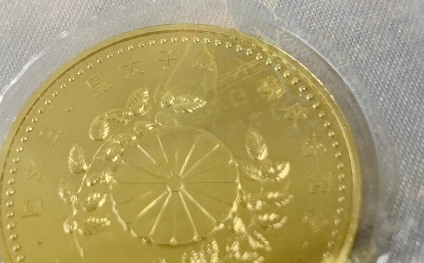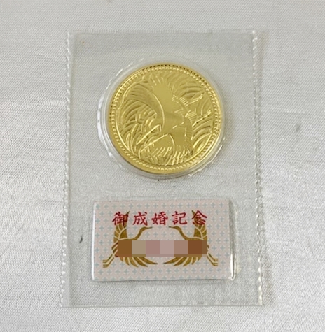 こちらの金貨は、平成5年(1993年)に今上天皇陛下と皇后雅子さまのご成婚を記念して発行された、純金製の記念金貨です。