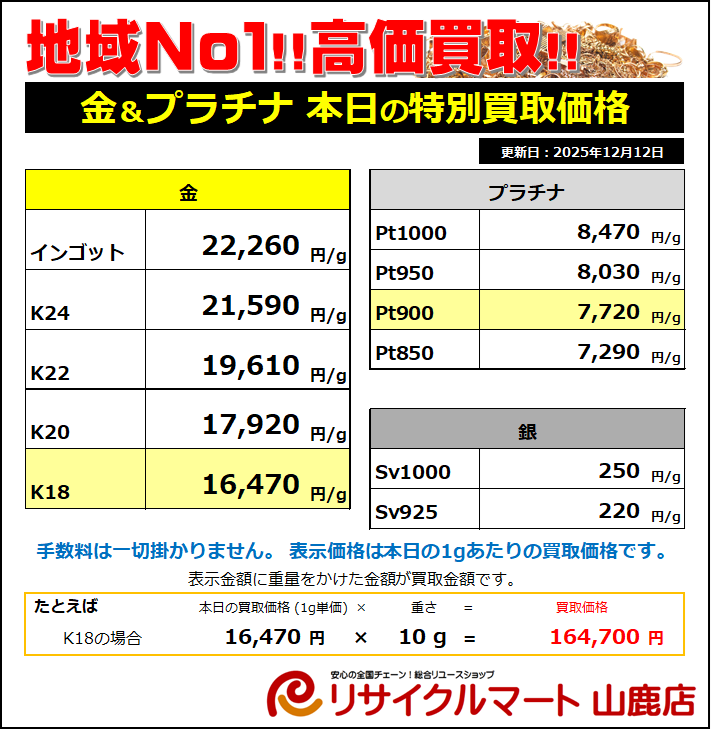 ★ 最新情報 ★【 本日の強化買取商品 】期間限定!特に【 金&プラチナ 】の買取に自信あります! 地域1番の高価買取挑戦中(*≧∀≦*)。