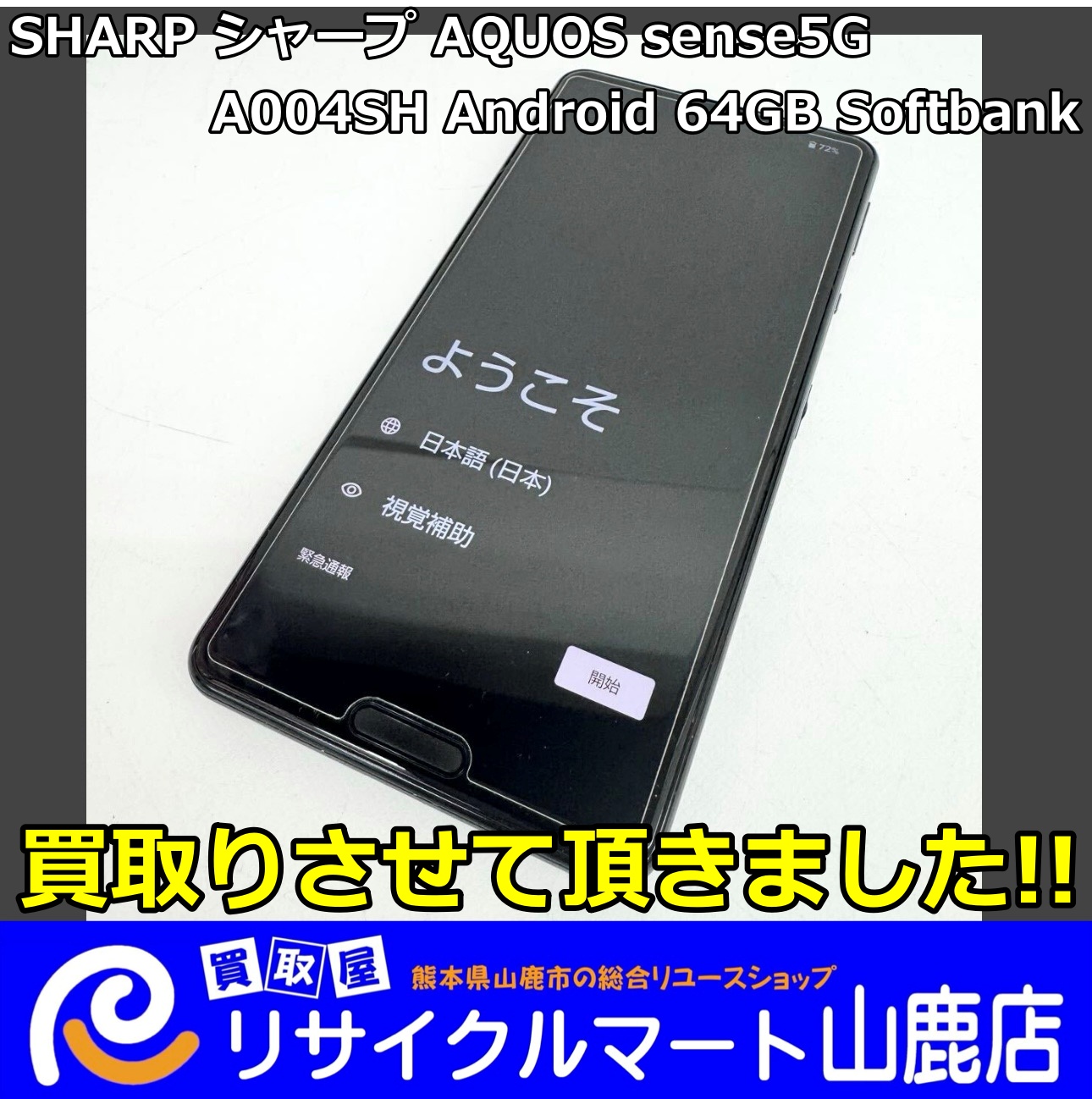 日付 2025/10/23SHARP(シャープ)名称 AQUOS sense5G A004SH Android 64GB Softbank スマートフォン買取価格お問い合わせください