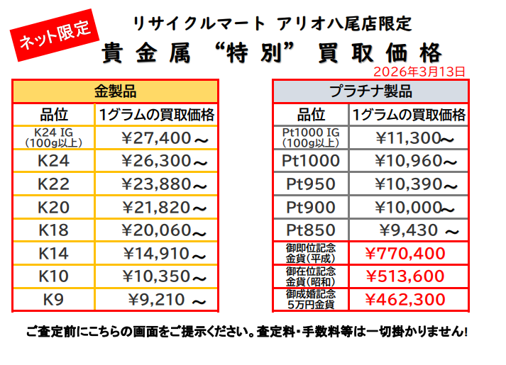 3/8 貴金属ネット限定特別価格!情勢不安で貴金属回帰の兆し?