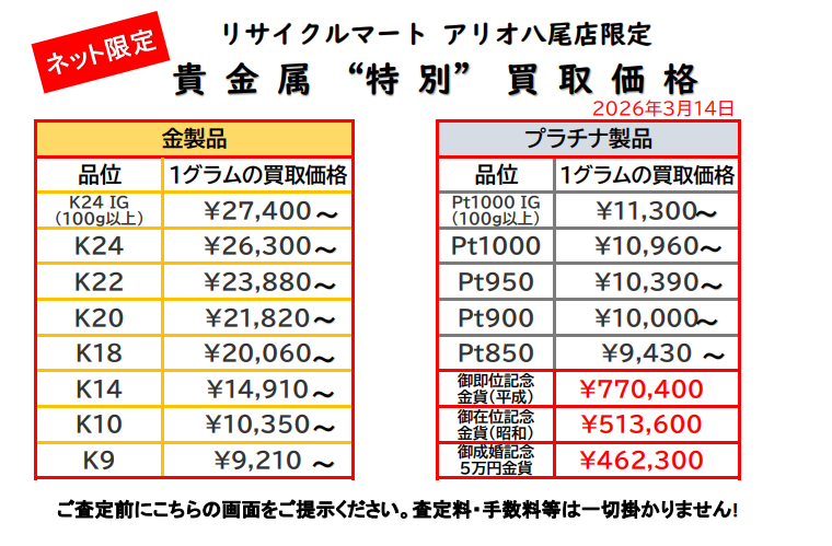 3/7 貴金属ネット限定特別価格!情勢不安で貴金属回帰の兆し?