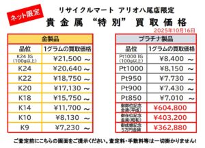 10/16 ネット限定貴金属買取価格です!史上最高値更新中!