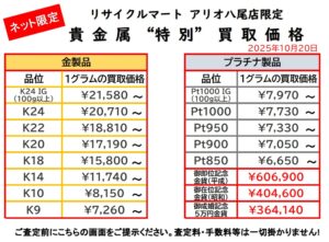 近くて便利 Ario八尾のリユースショップの貴金属 買取価格