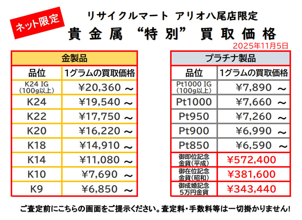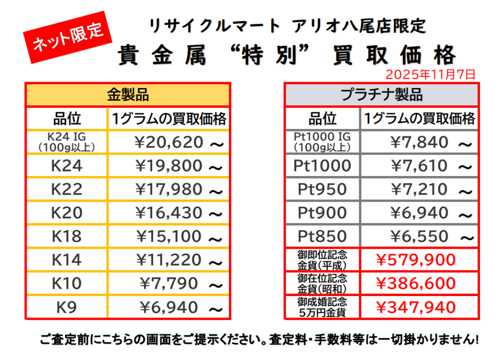 11/7 貴金属ネット限定価格です