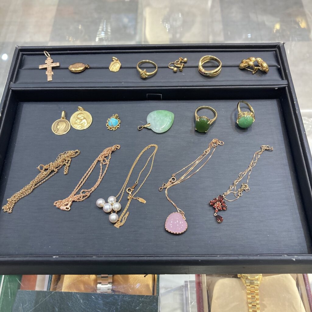 貴金属・宝飾品 金、プラチナ、ダイヤモンド、デザインが古い指輪やネックレス