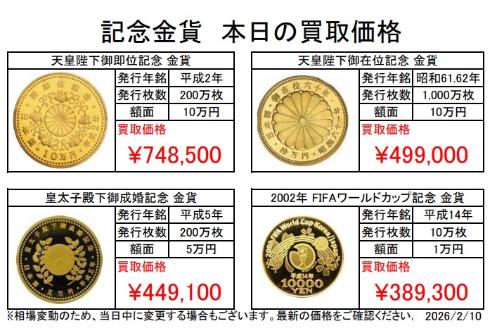 \ 本日の記念金貨の買取価格 /