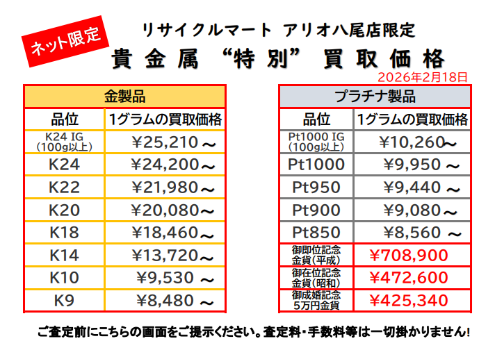 2/18 貴金属ネット限定特別価格!