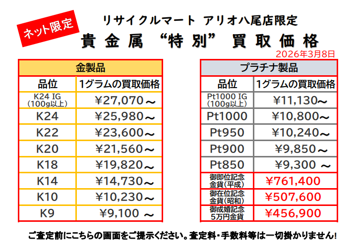 3/8 貴金属ネット限定特別価格!情勢不安で貴金属回帰の兆し?