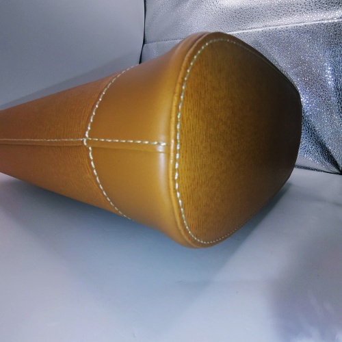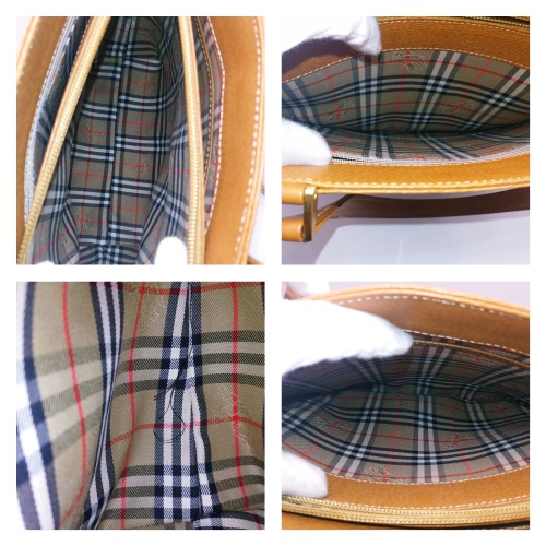 今回お持ち込みいただいたのは、落ち着いたキャメルブラウンの型押しレザーが美しいトートバッグです。 外見は非常にシンプルでビジネスから普段使いまで幅広く活用できるデザインですが、最大の特徴は「内装」にあります。バッグを開けると、一目でバーバリーとわかる伝統のチェック柄が贅沢にあしらわれており、ブランドのアイデンティティを感じさせる逸品です。