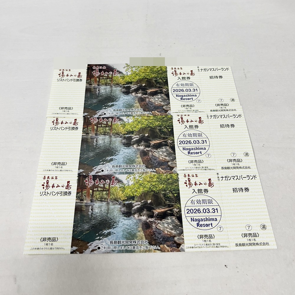 長島温泉 湯あみの島 ナガシマスパーランド 入館券 3枚 2026年3月31日迄 お買取りいたしました!